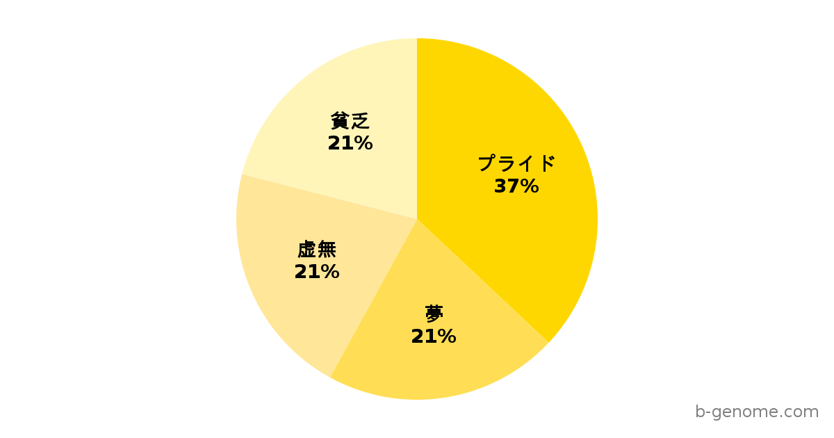 相手に依存しません。恋人がいてもいなくても、自分の人生の充実は変わらないという、自立した大人のスタンスを持っています。相手の言葉の裏を読みすぎて、「今の沈黙は何だ?」とあれこれ想像してしまい不安になります。一人反省会が趣味になっています。自分から話題を提供することができません。沈黙が続いても気まずさを感じない、同じ波長の相手でないと成立しません。恋愛も結婚も「人生の墓場」だと思っています。自由を奪われるくらいなら、一生独身で構わないと腹を括っています。デート代を割り勘にされると露骨に不機嫌になります。愛の大きさ=使える金額だと思い込んでおり、相手の経済力に依存しがちです。