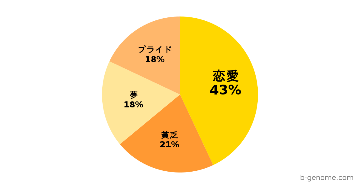 「自分がルールブック」と言わんばかりの決断力で組織を牽引します。迷える子羊たちを導くことに使命感を感じていますが、歩くスピードが速すぎて誰もついてこれないこともしばしばです。直感で「これはいける」と判断した道を進みます。根拠を聞かれても「勘だ」と答えますが、その勘が驚くほど当たります。細かい計算は苦手なので、優秀な参謀が必要です。人に任せる度量だけは一人前です。ライバルを蹴落としてでも勝ち上がろうとする競争心があります。そのハングリー精神が、なおさんを強くしています。部下の成功を自分のことのように喜べます。手柄を独り占めせず、チーム全員にスポットライトを当てる采配ができます。「スマホ一台で楽に稼げる」といった甘い言葉に弱いです。一発逆転を狙って、怪しい情報商材や投資話にコロッと騙されかける危うさがあります。ストレスが溜まると衝動買いに走ります。買った瞬間はスッキリしますが、請求書を見た瞬間に絶望するサイクルから抜け出せません。