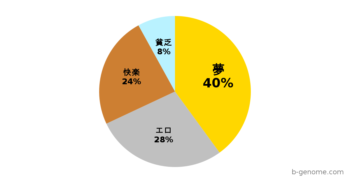 不正やズルを嫌い、正々堂々と勝負することを好みます。そのため、根回しや社内政治が渦巻く環境ではストレスで押し潰されそうになります。指示されたことの裏を読めません。「適当でいいよ」と言われると本当に適当にやってしまいます。難しい話は右から左へ受け流します。ニコニコしていますが、脳内では今日の晩ごはんのことしか考えていません。言われたことだけをやります。それ以上のことも以下のこともしません。純粋な労働力です。給料日は一瞬の輝きで、気づけば口座残高と給料日までの日数を数える日々です。「自分へのご褒美」という名の散財が多すぎます。コンビニでの「ついで買い」や、使っていないサブスクなど、使途不明金が多々あります。何に使ったか分からないのにお金がありません。