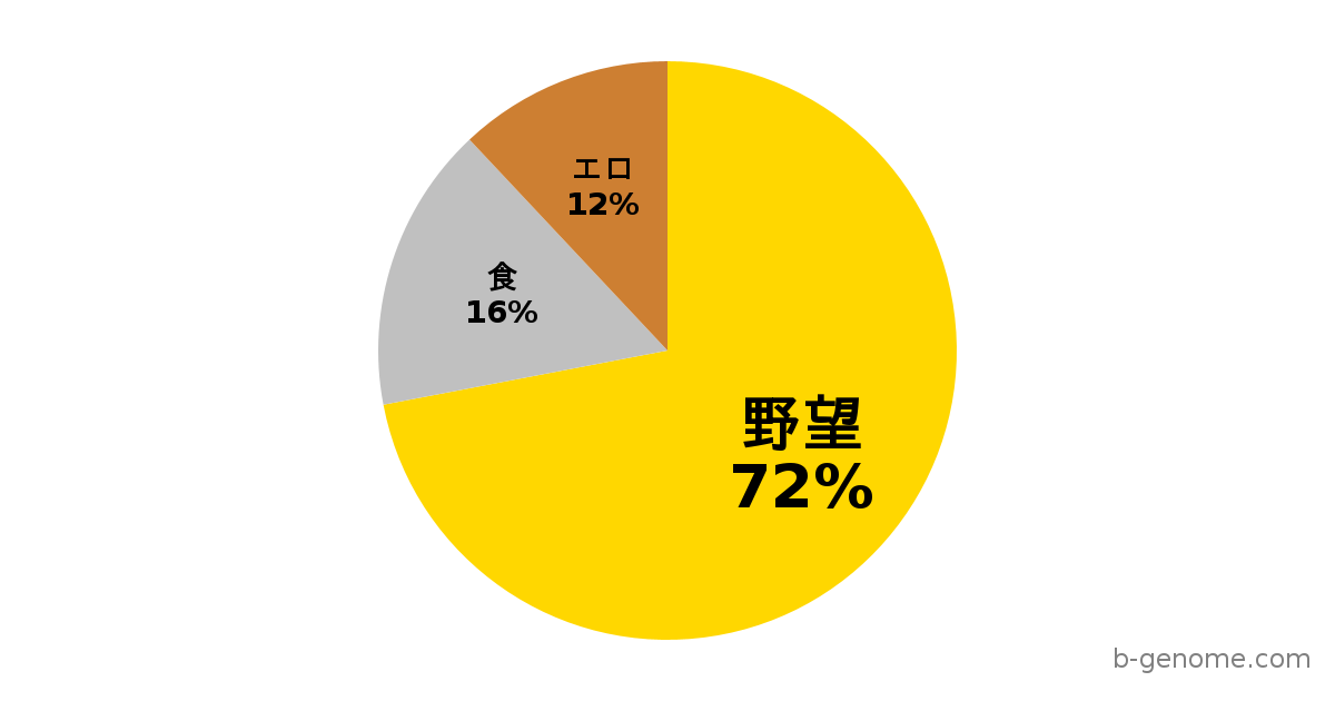 ゲノム太郎さんの心臓には、血液の代わりに「野心」という名のガソリンが流れています。「現状維持は緩やかな死」だと本気で信じており、常に飢えた狼のような瞳で更なる高みを見据えています。成功者の自伝やインタビューを読み、自分と重ね合わせてモチベーションを高めています。ただし、成功した後のことばかり想像して、そこに至る苦労は見ないふりをしています。意識だけは高いのですが、戦略が伴っていません。「ビッグになりたい」と叫びながら、具体的に何をするかは決まっていない、愛すべきお調子者です。