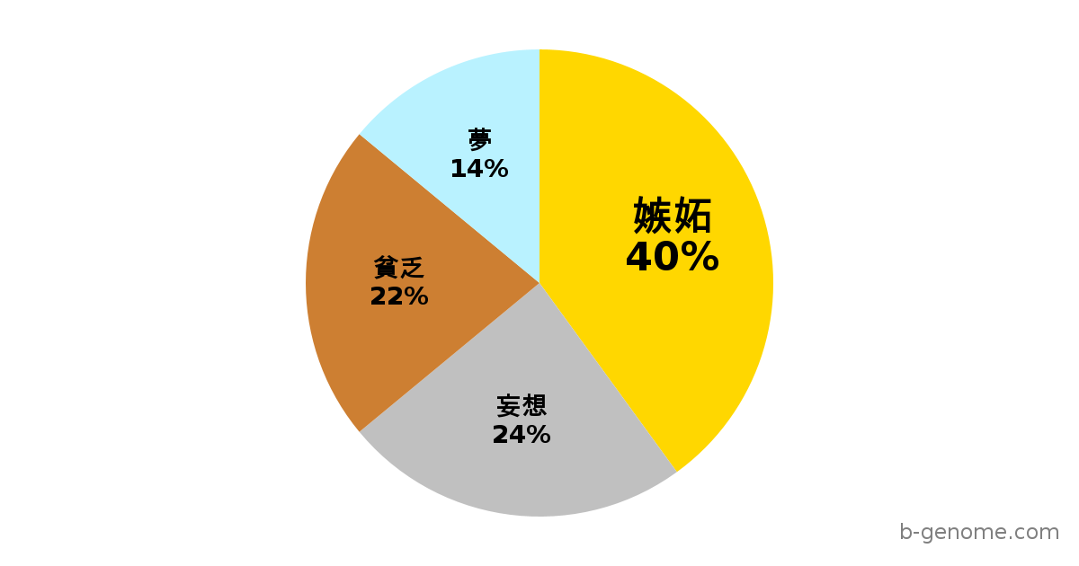相手の言動の矛盾点や、過去の発言との些細な違いをしっかりと記憶しています。ついつい指摘したくなりますが、相手の状況によって逆効果になりがちです。返信が少し遅いと様々なネガティブな想像が浮かんでしまうことを止めることができません。平静を装いながらも、どうでもよいメッセージをさらに送ってしまいます。ついつい「普通はこうするべき」という一般論を優先します。常識が無い相手だと気持ちが即冷めます。恋愛は、感情のジェットコースターです。ゲノム太郎さんは、メリーゴーランドのような、穏やかで予測可能な関係すら望んでいません。ただベンチに座って、一人で静かに過ごしたいのです。見栄を張って後輩や女性に奢ってしまい、後で一人でカップラーメンをすすることになります。男気と無計画という言葉の違いがわかりません。