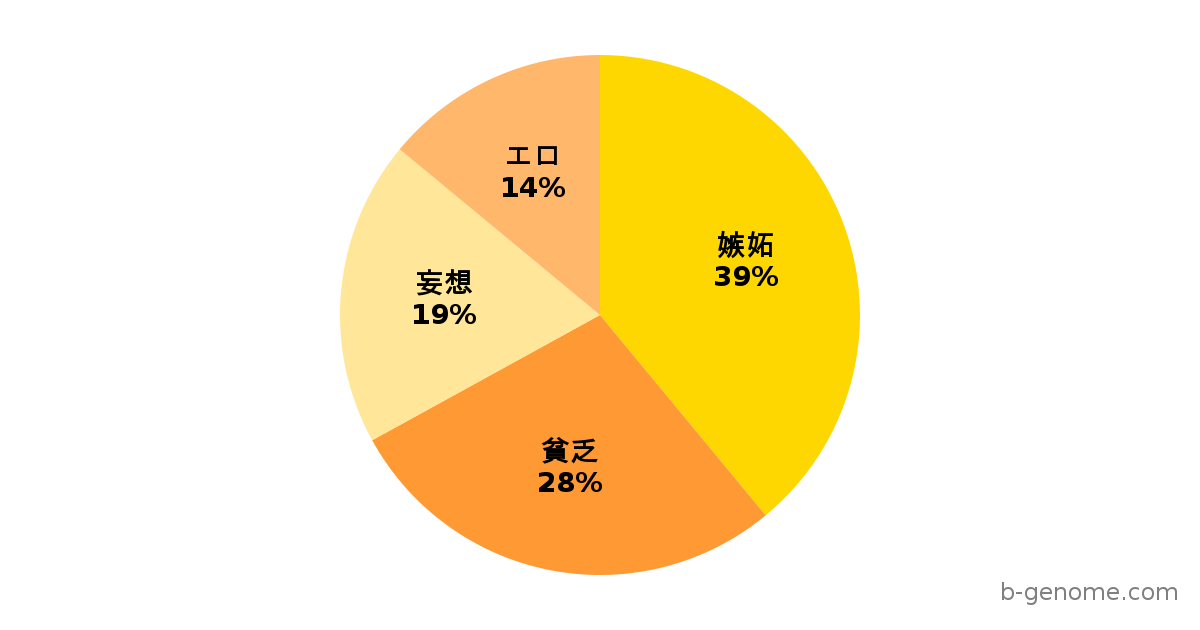 お金をかけなくても楽しめるデートを想像したり、将来の生活費を計算する癖があります。金銭面での価値観が合わないと、すぐに不満が顔に出てしまいます。お金の心配をしないで済む、穏やかで平凡な生活を望みます。現実はシビアなもので、お金の切れ目が縁の切れ目になりがちです。デート代を割り勘にされると露骨に不機嫌になります。愛の大きさ=使える金額だと思い込んでおり、相手の経済力に依存しがちです。