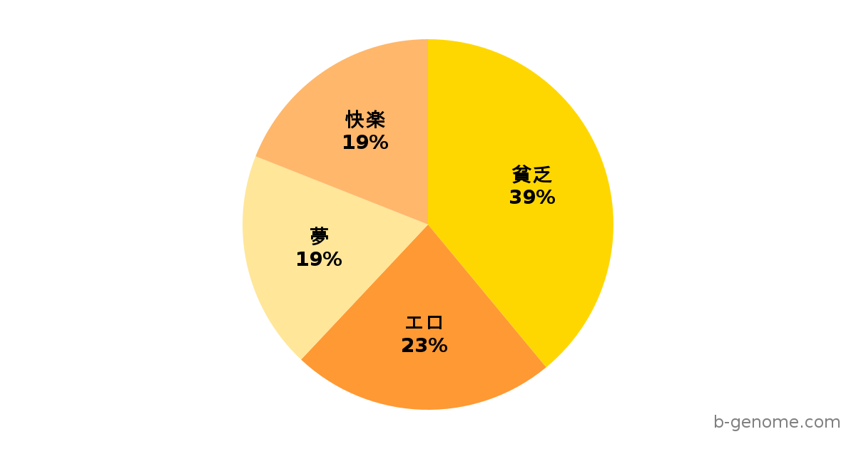 名無しさんは、細かいことに全くこだわらない、とっても大らかな性格です。欲望に忠実で、目の前の美味しい状況を我慢することが全くできません。今が良いならそれで良し、と思っているのが実は本音です。「深く考えない」ことが名無しさんの持つ哲学です。悩み事があっても、美味しいものを食べて寝れば解決するしぶとい単純構造をしています。「楽して稼ぎたい」という純粋な欲望を持っています。怪しい副業広告をクリックしてしまい、うっかり最後まで見てしまいます。