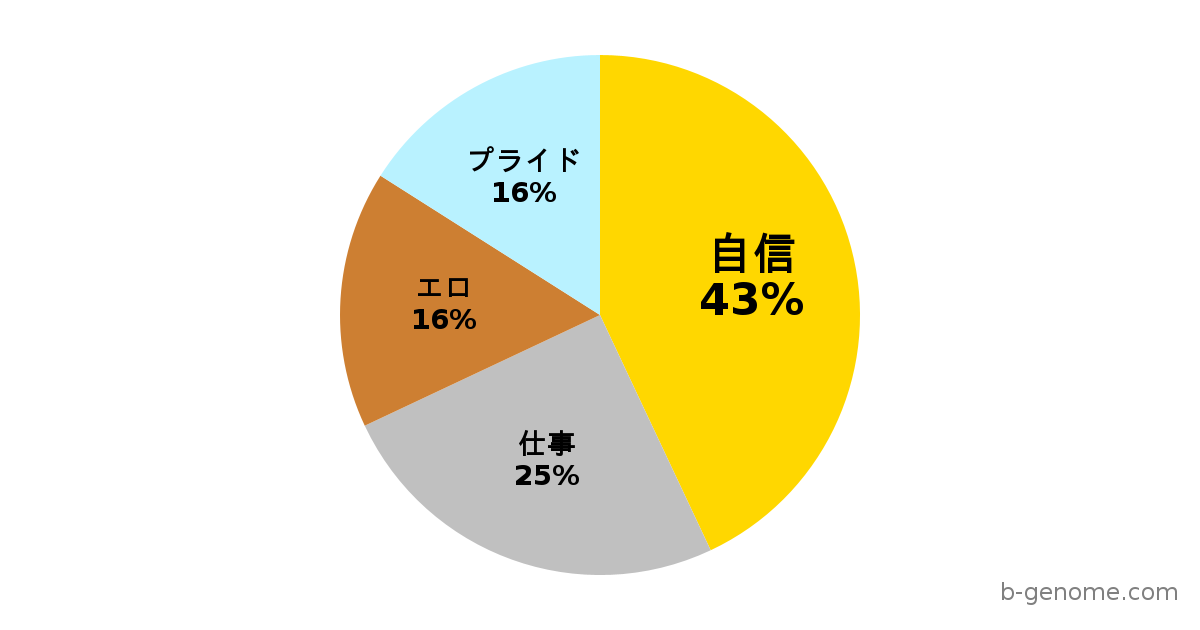 ゲノゲノさんは、物事の細かい部分が一度気になりだすと止まらなくなってしまう性質を持っています。完璧主義な一面がありますが、ある日突然どうでも良くなって全て投げ出してしまうことがあります。目に見える世界の秩序を何よりも大切にします。部屋が散らかっていたり、物が定位置になかったりすると、それだけで強いストレスを感じます。自分の経験則に基づいて人のことを評価しています。自分と違う価値観を持つ人は敵のように感じてしまいます。競争や成功といった、他人との比較で成り立つ価値観に強いストレスを感じます。争うくらいなら、最初から何者でもない方が楽だと考えています。