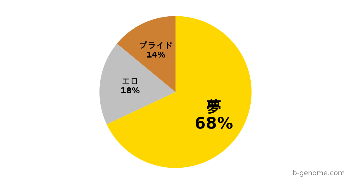 プレッシャーがかかる場面ほど燃えるタイプで、逆境において真価を発揮します。「責任は私が取る」と言える誠実さがあり、部下からの信頼は絶大です。新しいプロジェクトを立ち上げるのが好きですが、細かい運用は部下に丸投げします。「あとはよろしく」と言って次の獲物を探しに行きます。細かい計算は苦手なので、優秀な参謀が必要です。人に任せる度量だけは一人前です。ライバルを蹴落としてでも勝ち上がろうとする競争心があります。そのハングリー精神が、Himaさんを強くしています。「リボ払い」や「後払い」は、未来の自分からの借金だという感覚が麻痺しています。毎月の支払額が一定なことに安心していますが、それは終わりのない旅の始まりです。「お金がない」が口癖ですが、その割にコンビニに寄る回数は人一倍多いです。小さな浪費の積み重ねが致命傷になっています。